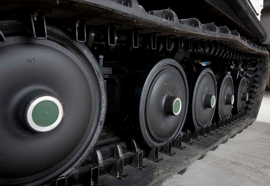 Traditional rubber tracks consist of three parts: iron core, steel cord, and rubber. They are suitable for low-speed operation at 15KM/H. In military applications, rubber tracks often need to run at speed of over 60km/h for a long time. During high-speed driving, the internal structure of the track is prone to damage and surface wear due to high temperatures. Taite improves the service life in high-speed applications by exploring different track internal structures and rubber compound.